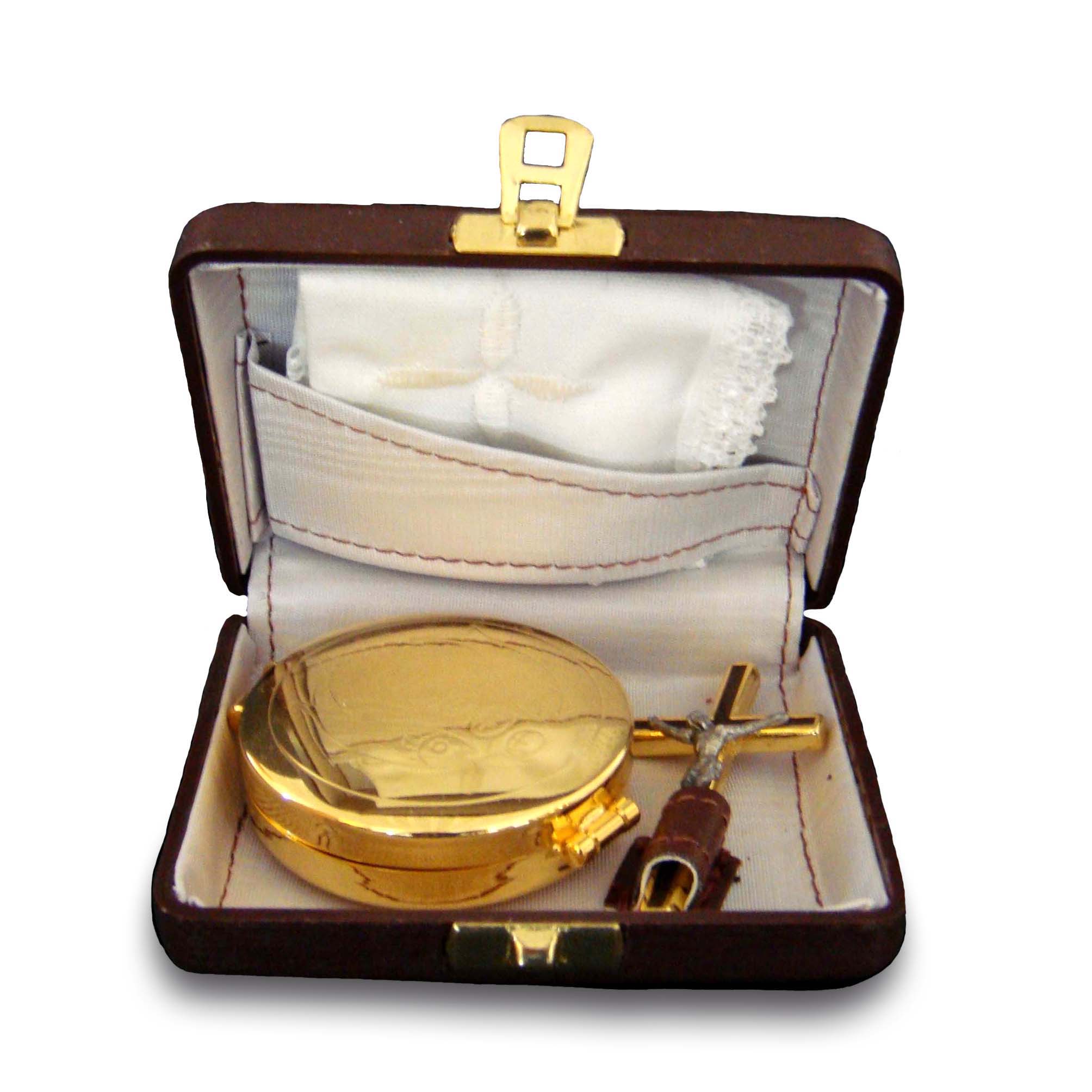 teca in metallo dorato con purificatoio e crocifisso
